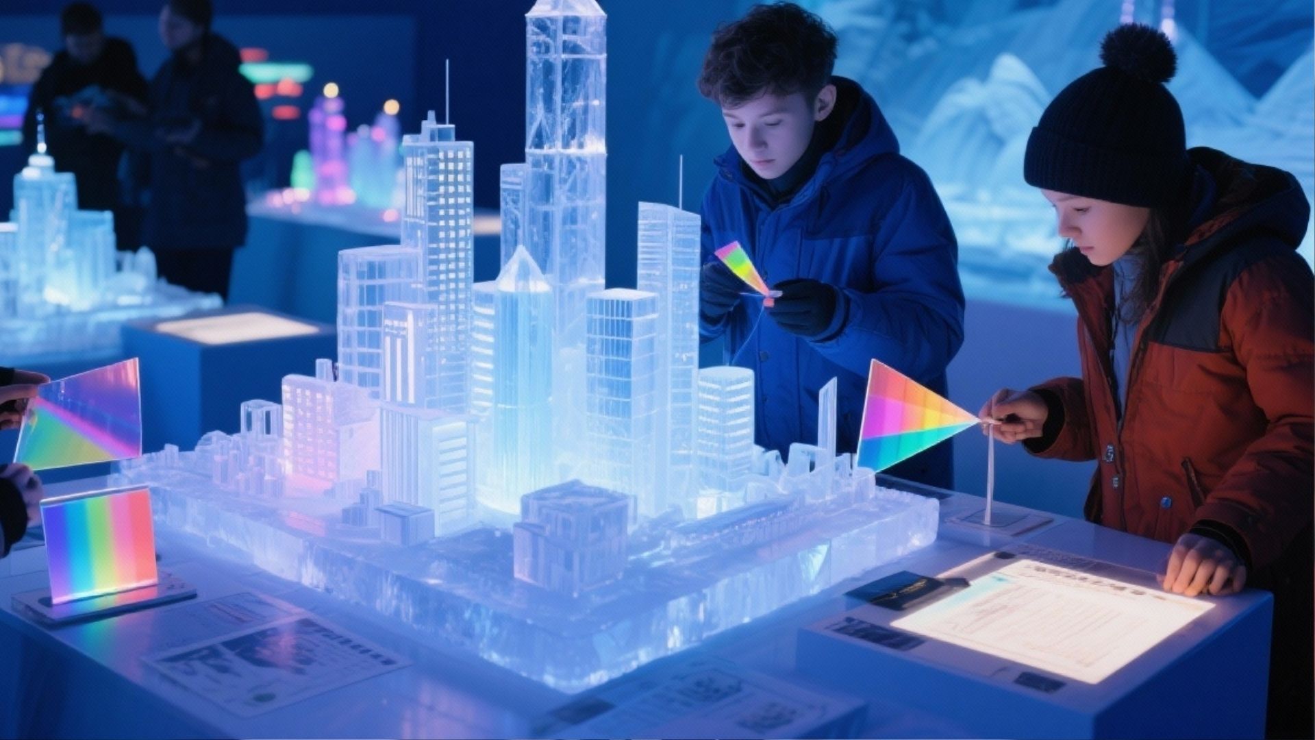 色散等原理,并思考这些现象如何被运用到冰雪艺术和城市灯光设计中;在 Inquiry-Based Learning 探究中,将科学发现转化为 Ice City 的创意元素,为后续城市模型搭建打下科学与想象力基础。