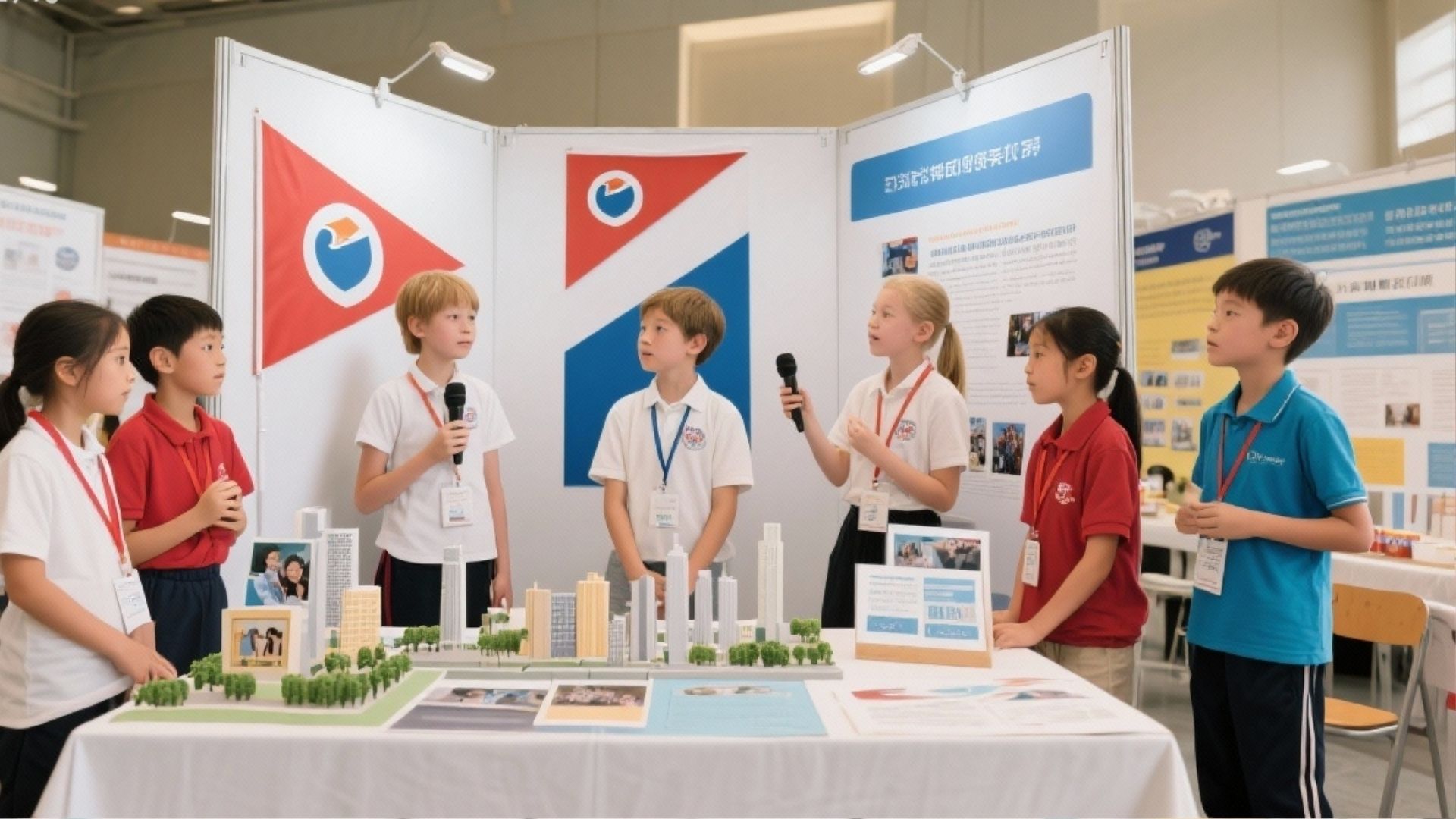 面向家长和嘉宾开展 Student-Led Showcase,学生以中英文讲解展位