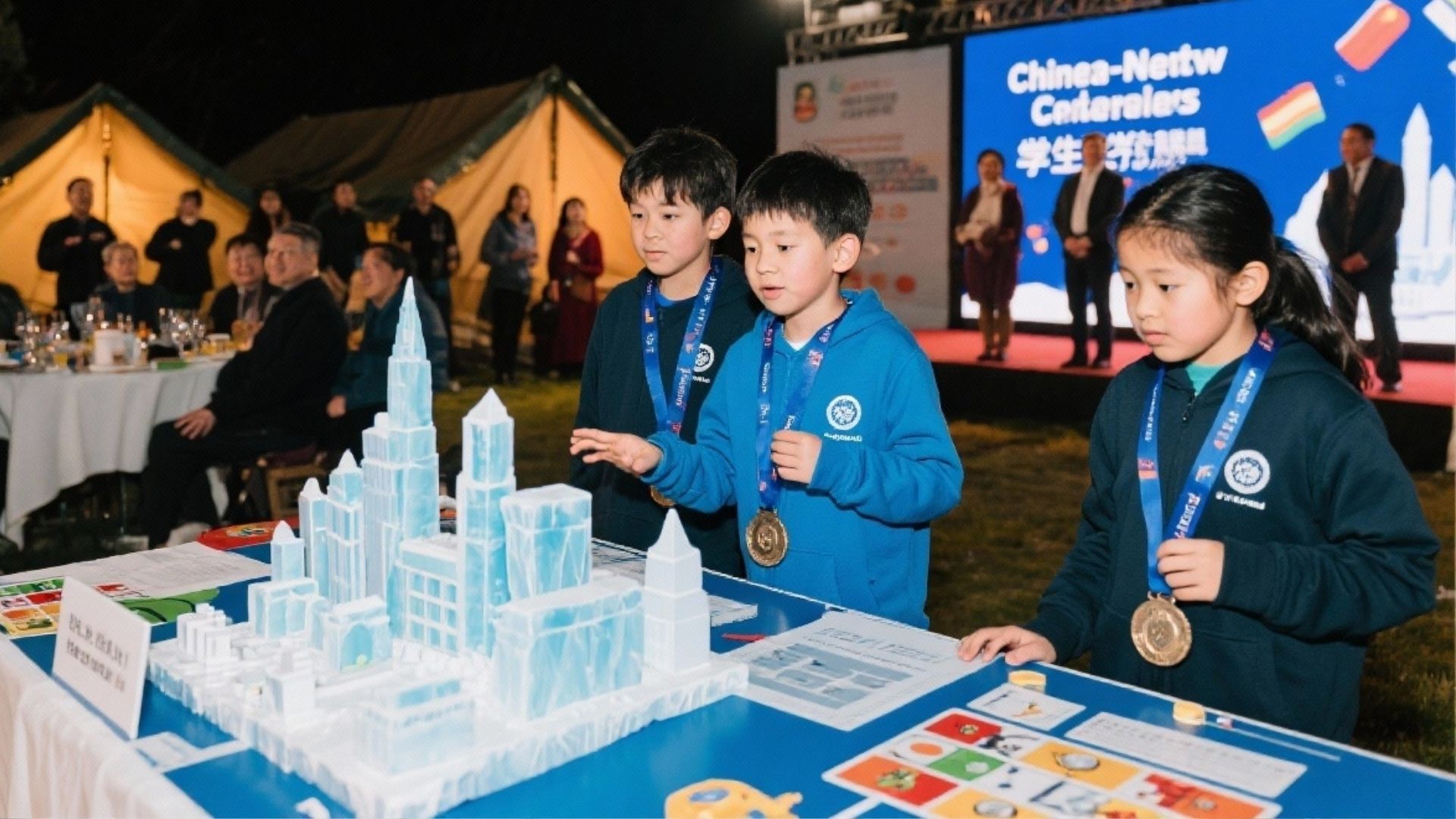 Ice City 模型和互动游戏,分享个人成长故事与团队旅程;下午举行闭营仪式与表彰环节,晚上举办 China–New Zealand Culture Night & 营地晚宴,在仪式感与庆祝氛围中巩固跨文化友谊,为这段冬季本土国际营体验画上高光句号。